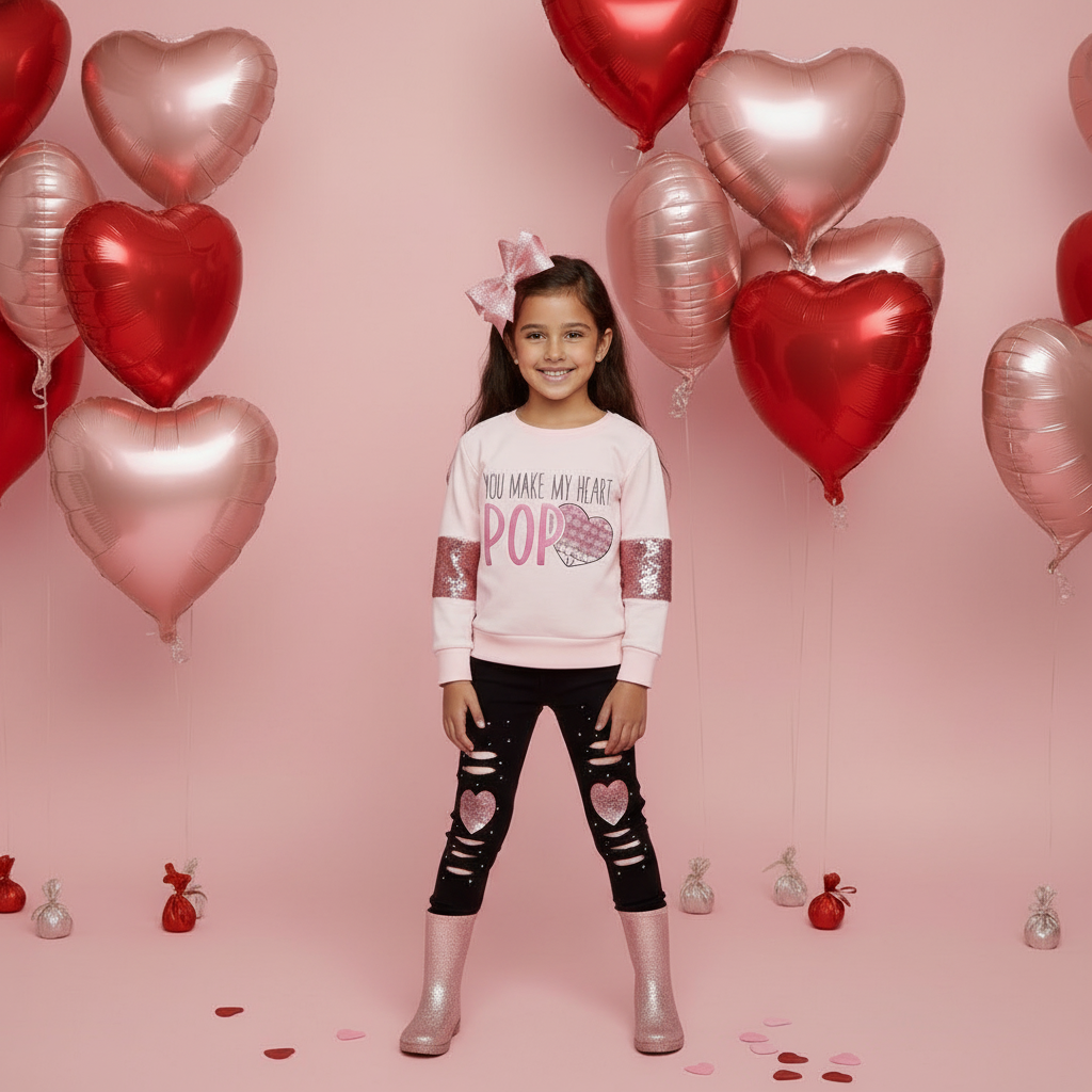 Your tiny Kutie will be simply precious in our You Make My Heart Pop Legging Set! The pink long sleeve top looks oh-so kute with the matching leggings. The stretchy waistband provides both comfort and fit, while the sequin accents gives it a playful touch. Complete the look with sequin bows and our Heart Pop Lip Gloss she will stylish and glossy with this outfit combo!