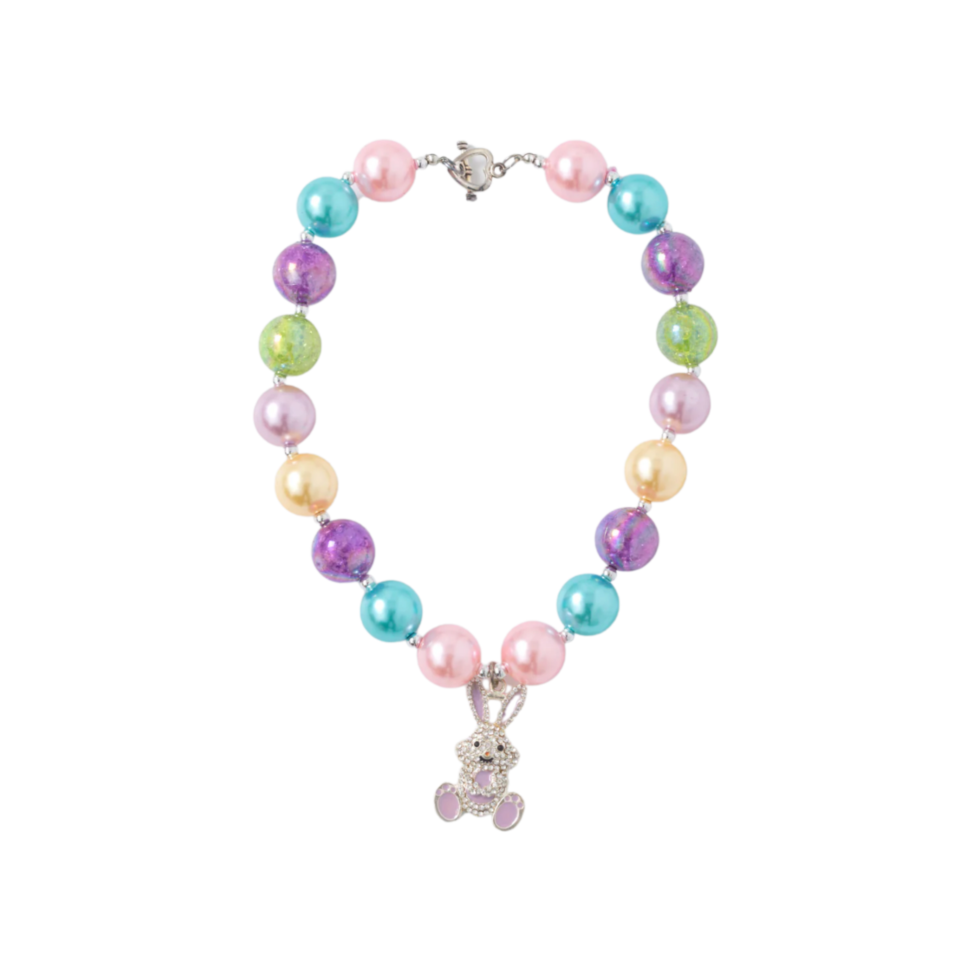 Add some springtime sparkle to your little girl's outfit with our Pastel Bling Bunny Necklace! Featuring an array of light pastel beads and an adorable rhinestone bunny pendant, this necklace is a must-have for Easter (and beyond)! Little girls can't get enough of them!
